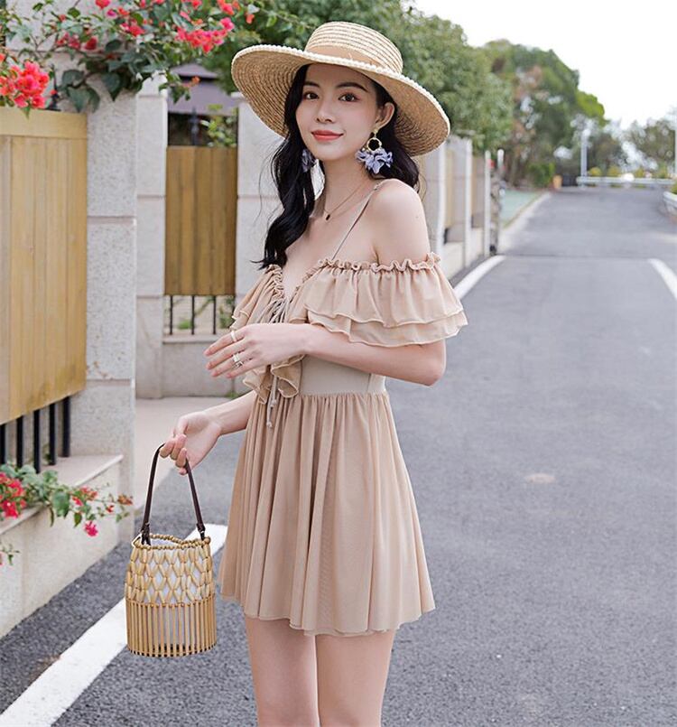 芸能人も好きな商品 スリム 休暇 ビーチ 温泉 水着 一言の肩 小さな胸が集まった★★ 水着 レディース おしゃれ ビーチ ビキニ リゾート プール 体型カバー スリム 可愛い インスタ映え セパレート 露出控えめ 盛れるハイウエスト 韓国 日焼け対策 競泳 スイムウェア日焼け防止 スタイルアップ 着痩せ