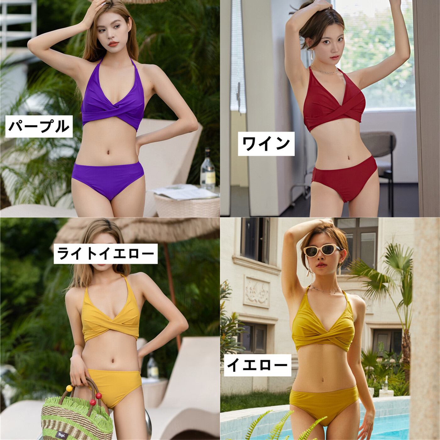 三角 ホルターネックビキニ 海 リゾート セクシー フロントツイスト 水着 レディース 水着 体型カバー★★ 水着 レディース おしゃれ ビーチ ビキニ リゾート プール 体型カバー スリム 可愛い インスタ映え セパレート 露出控えめ 盛れるハイウエスト 韓国 日焼け対策 競泳 スイムウェア日焼け防止 スタイルアップ 着痩せ