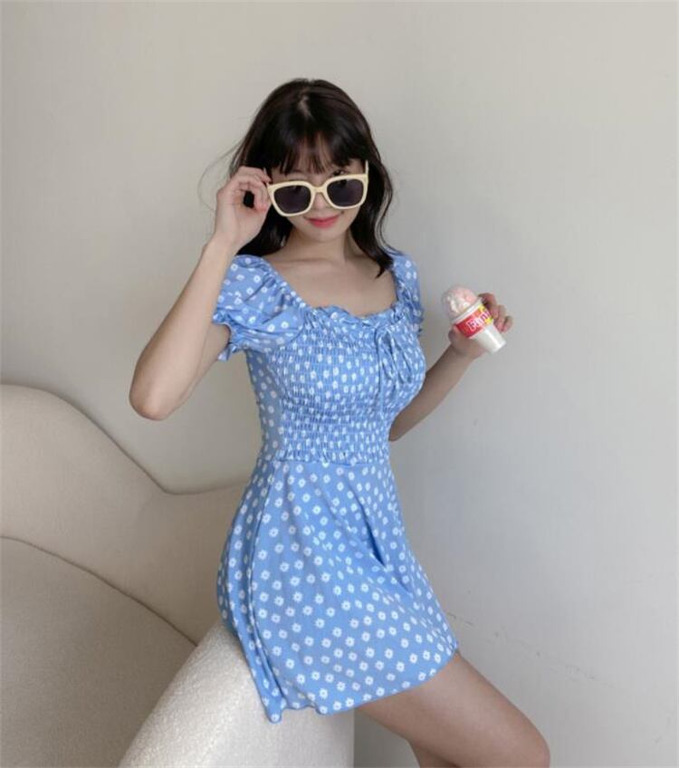 フローラル 半袖 コンサバティブ 小さい新鮮な 背透けて セクシー ワンピース水着