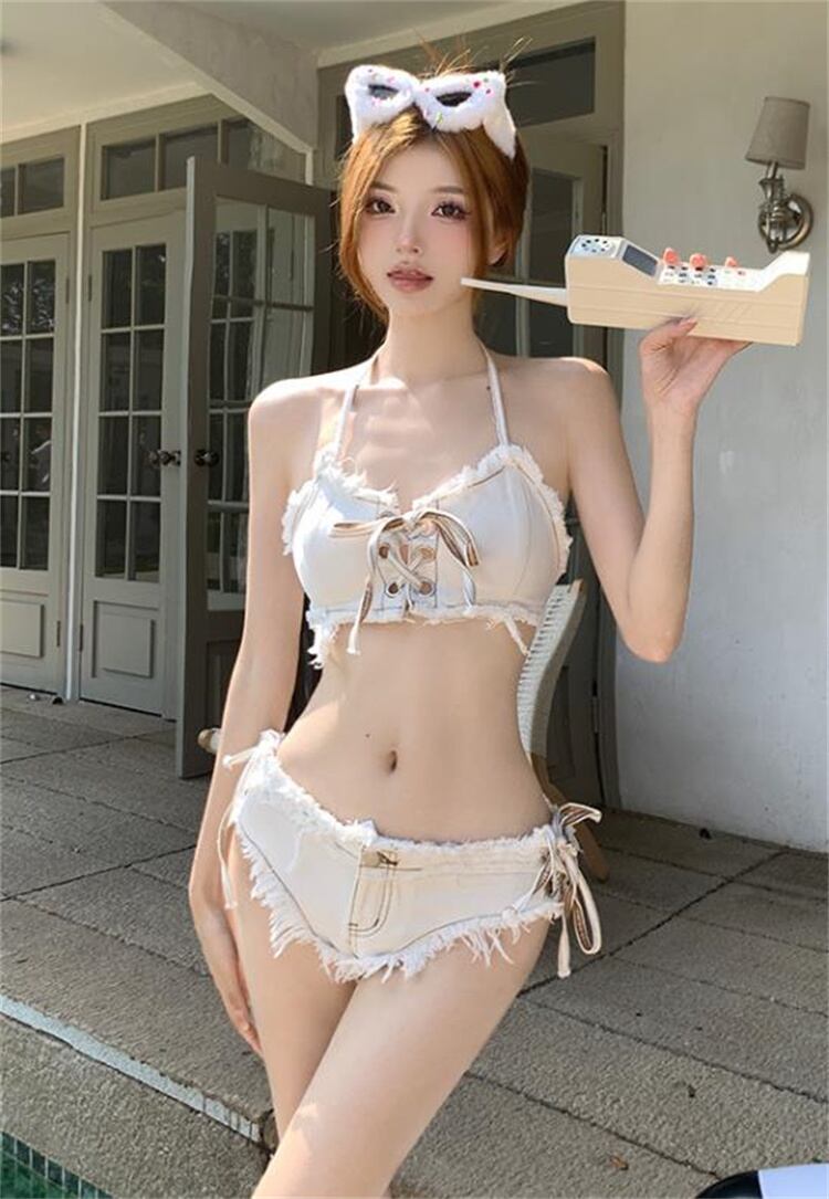 デニム ビキニ ギャル 大人気 水着セット 女性 ストラップ ビーチ リゾート 水着