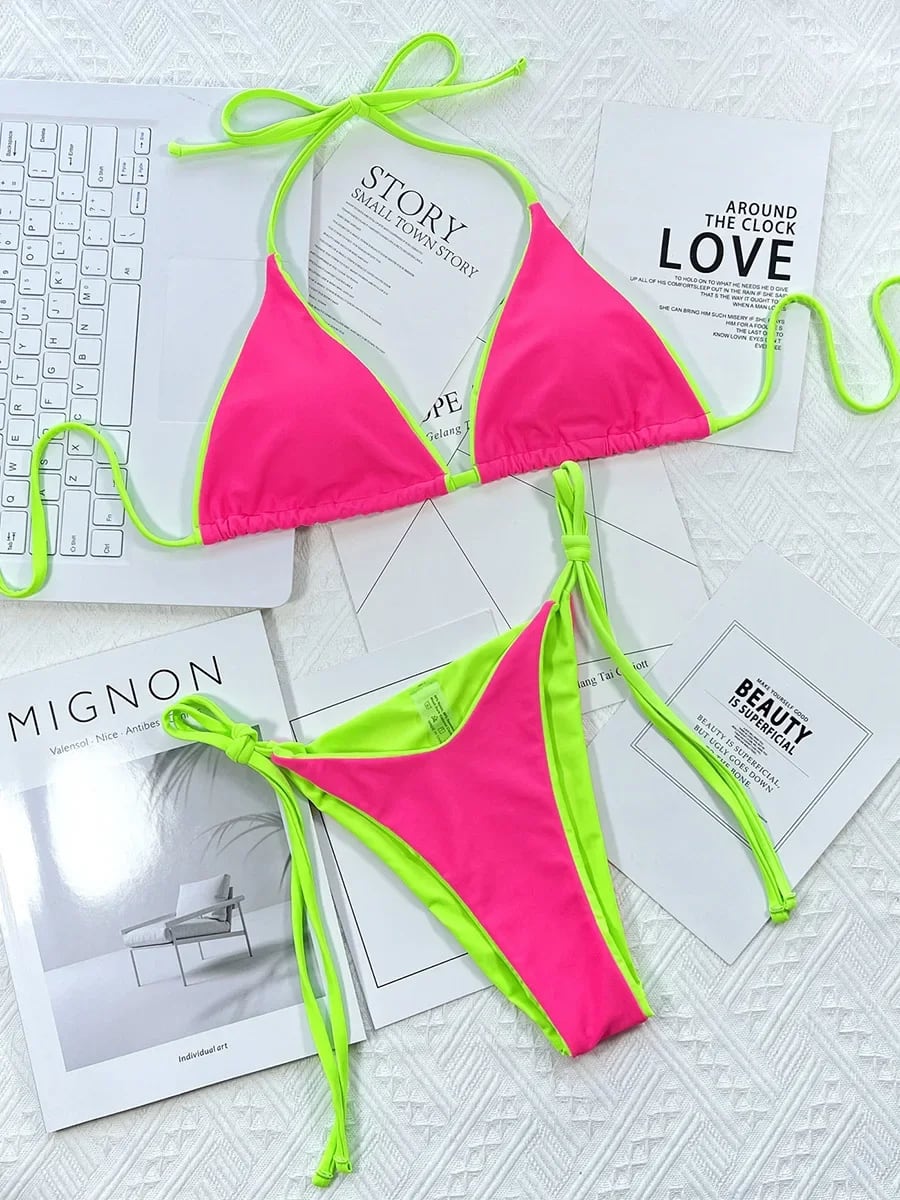 女性用ツーピースマイクロビキニセット,水着,ヒョウ柄,ハイウエスト,ひもパンティー,ネオン,2024|ビキニセット| セパレート水着 ビキニ レディース T240618200319_03