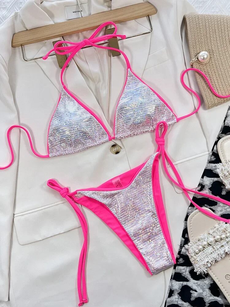 女性用ツーピースマイクロビキニセット,水着,ヒョウ柄,ハイウエスト,ひもパンティー,ネオン,2024|ビキニセット| セパレート水着 ビキニ レディース T240618200319_13