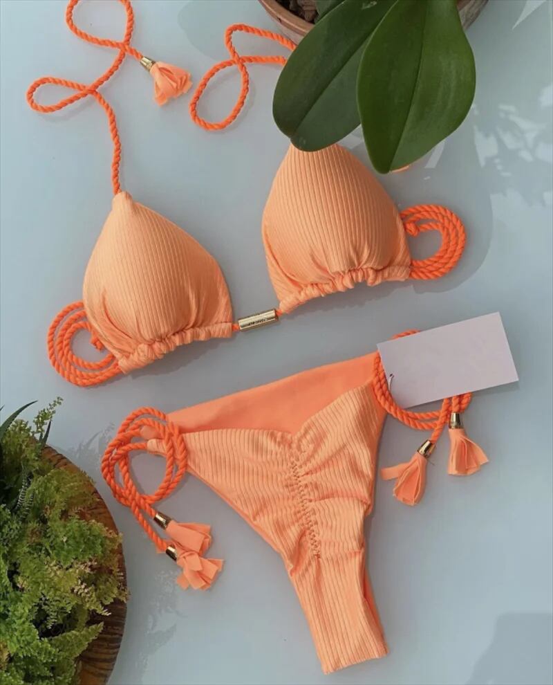 (7色) 無地編組水着多色ビキニツーピーススーツ特別な生地ブラジル女性水着水着 セパレート水着 ビキニ レディース T240618200721_21