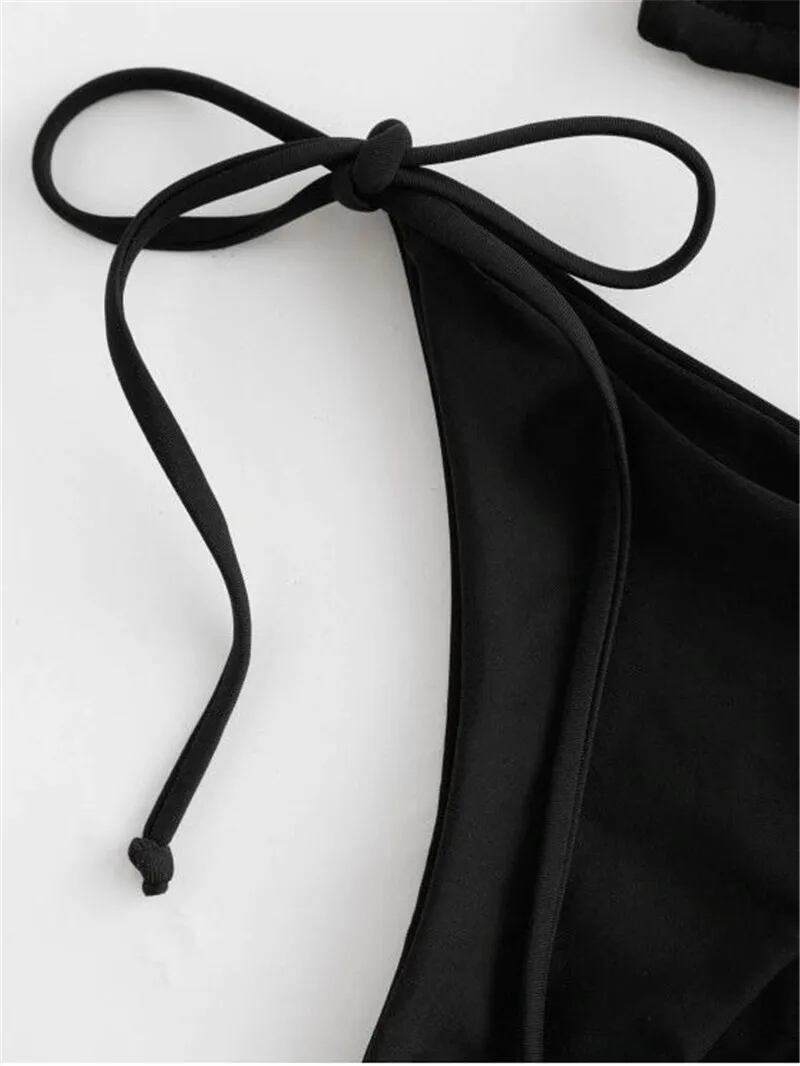 セクシーなマイクロビキニ,女性用のパディング付きの黒の単色水着,水着,3ピースの水着,水着,ミニ水着2020|ビキニセット| セパレート水着 ビキニ レディース T240618200759_02