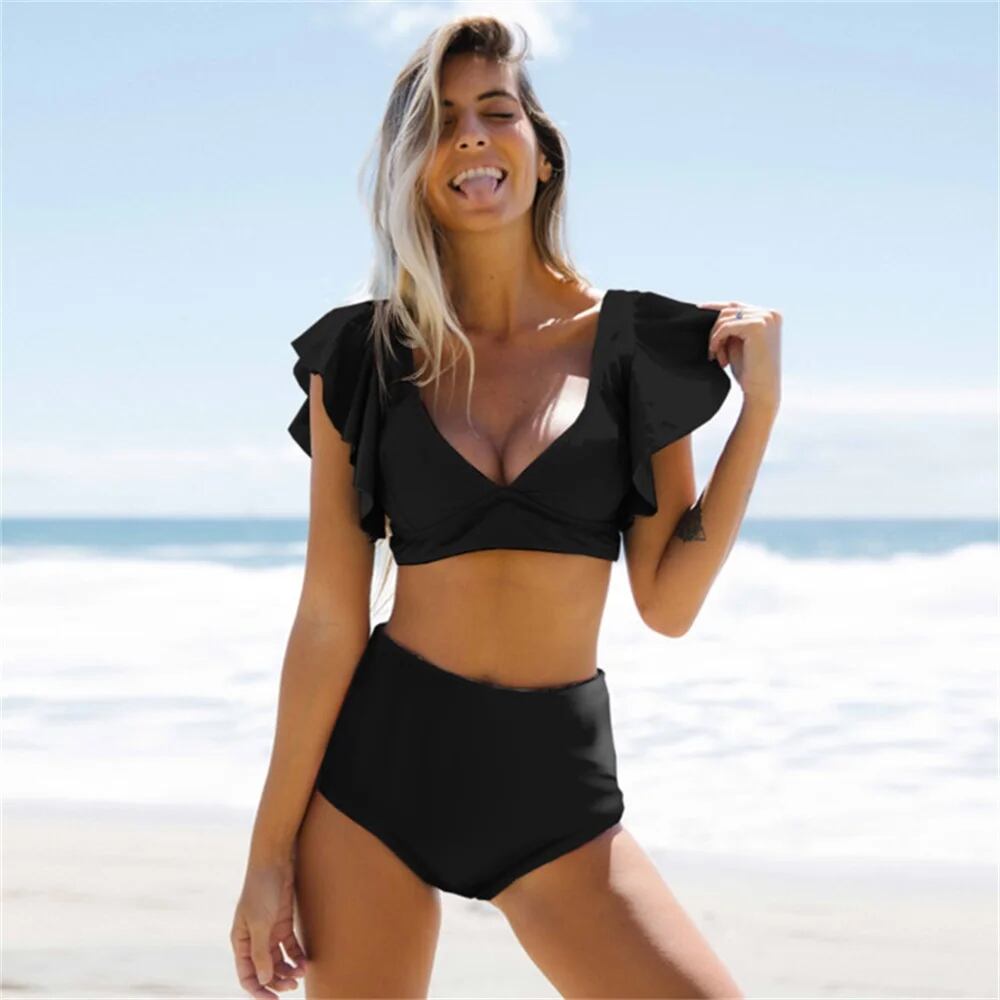 女性用フローラルフリル裾ビキニセット、Vネックラインハイウエスト水着、ビーチスーツ、女の子用水着、フローラル、2個、2024|ビキニセット| セパレート水着 ビキニ レディース T240618201335_12