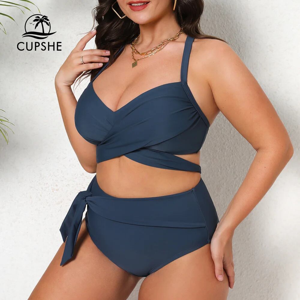 Cupshe 女性用ツーピース水着,ラージサイズ,ラップクロージャー付き,ハイウエスト,ラージサイズ,3XL,ビーチウェア,2023 ビキニ Tシャツ T240619005220_02
