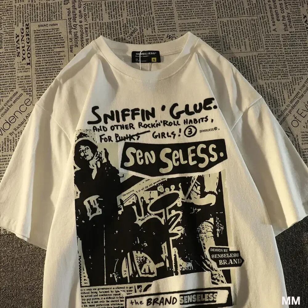 男性用のレトロな半袖Tシャツ,女性用の特大のTシャツ,ルーズなアメリカンプリントのトップス,カワイイストリートウェア Tシャツ シャツ T240619151602_03