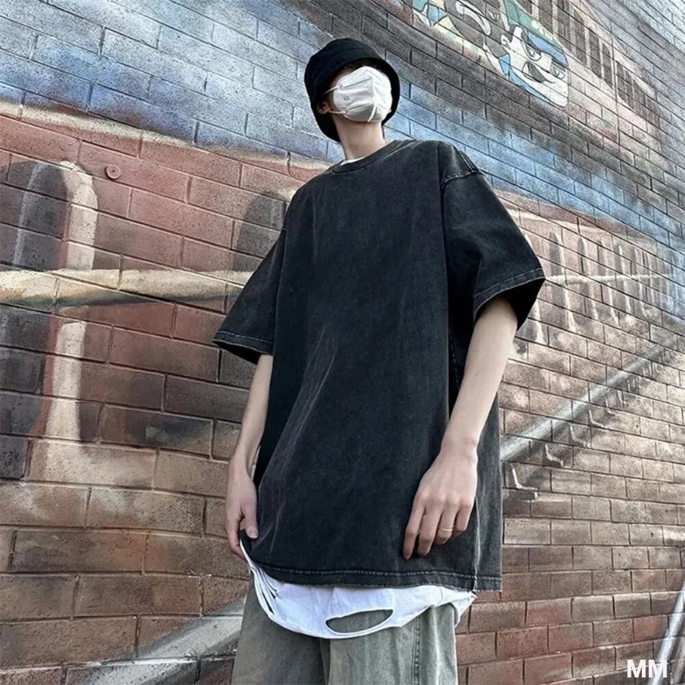 男性と女性のためのレトロな半袖Tシャツ,裸の肩,綿,無地,ヒップホップスタイル,230g Tシャツ シャツ T240619151620_03
