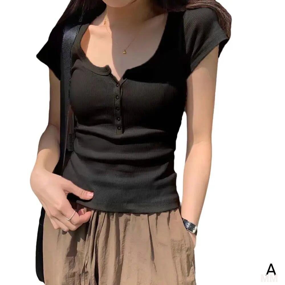 女性用半袖Tシャツ,ヴィンテージ,ボタン付き,スリムフィット,タイト,レトロ,3色,カジュアル,夏,新品 Tシャツ シャツ T240619151645_01