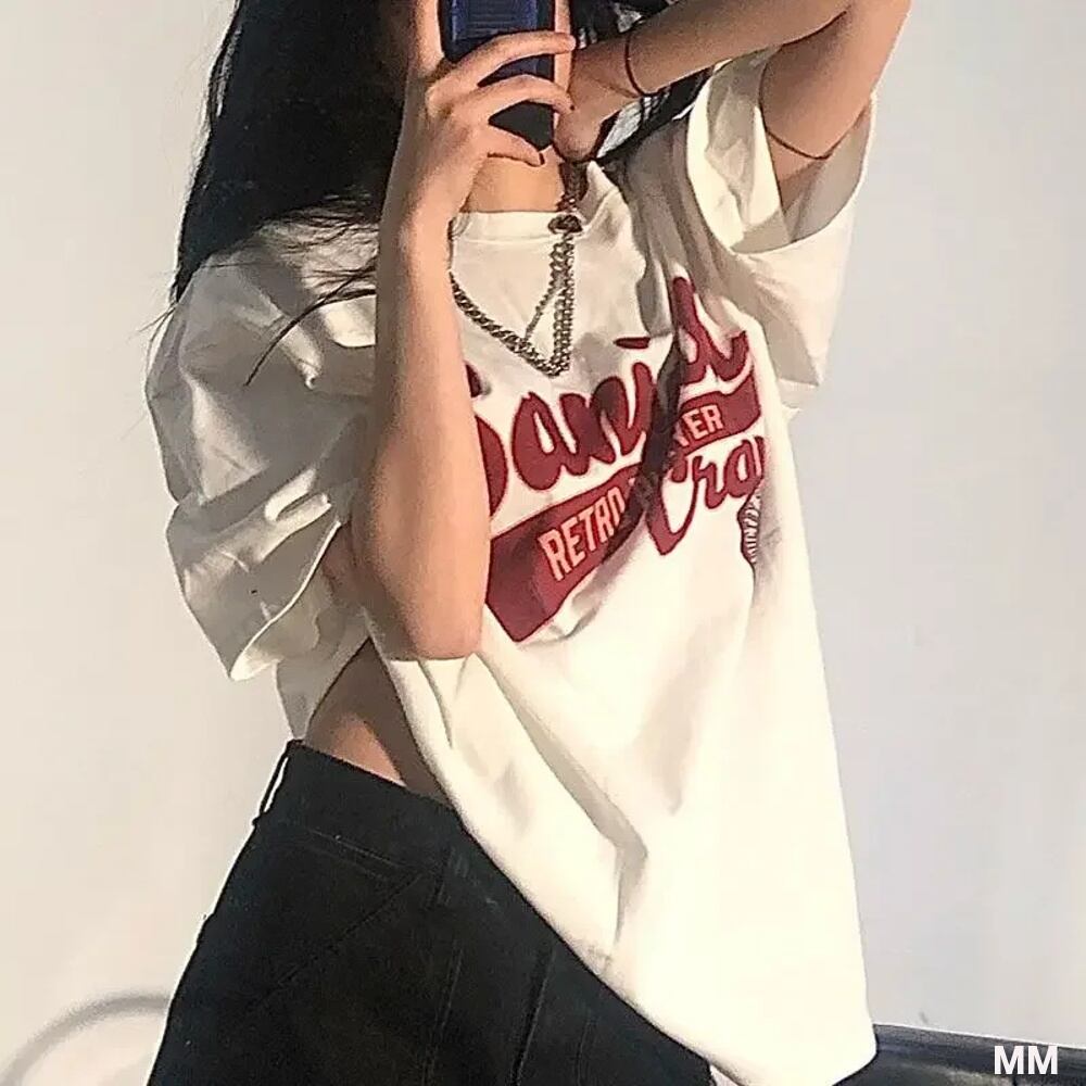 女性のためのレトロなゴシック半袖Tシャツ,韓国の夏のTシャツ,だぶだぶ,原宿y2k,美的 Tシャツ シャツ T240619151727_06