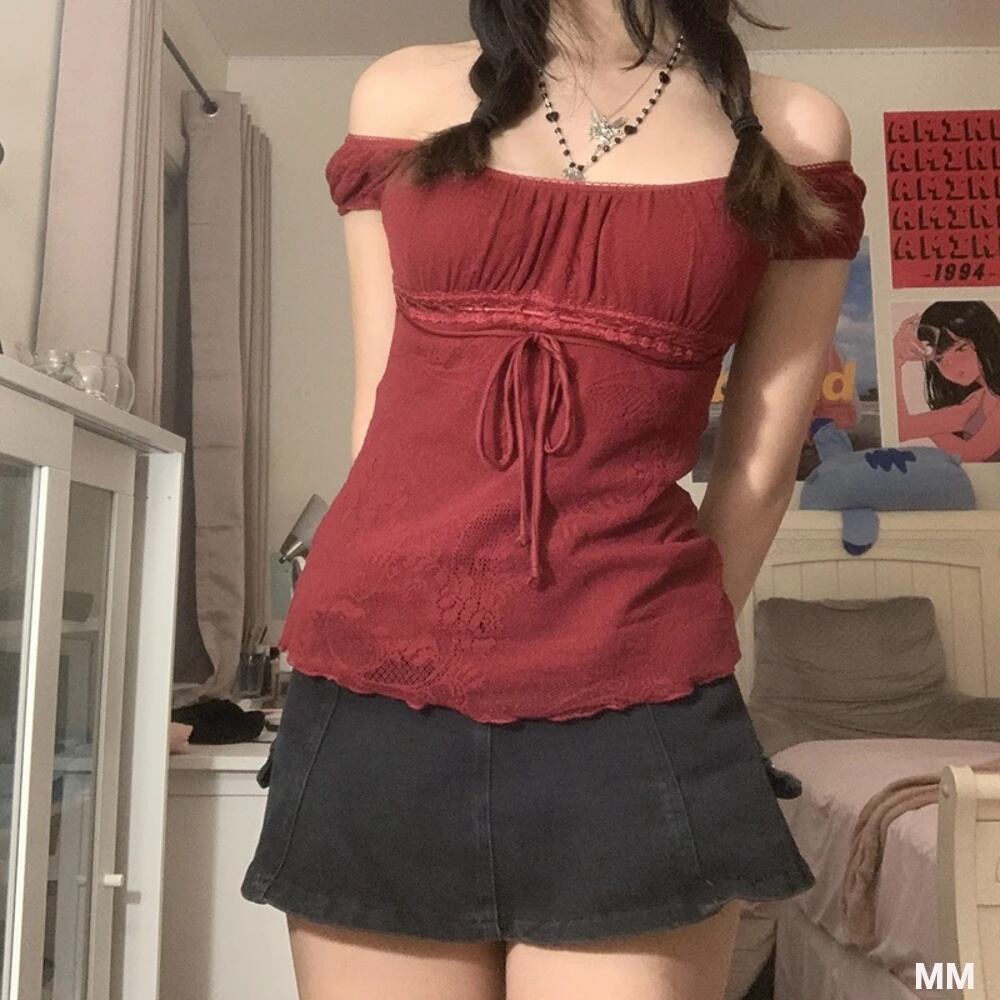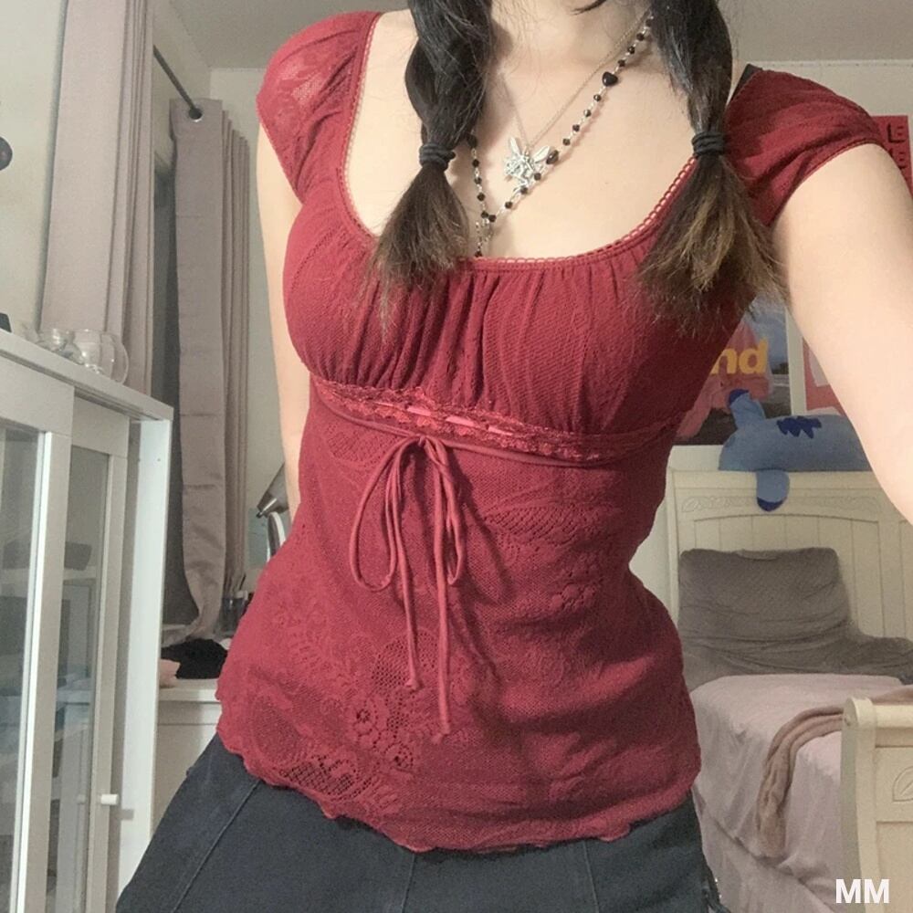 女性のためのエレガントな半袖Tシャツ,スクエアカラー,ヴィンテージの妖精のストリートウェア,トップス,レトロなスタイル|Tシャツ| Tシャツ シャツ T240619151817_03