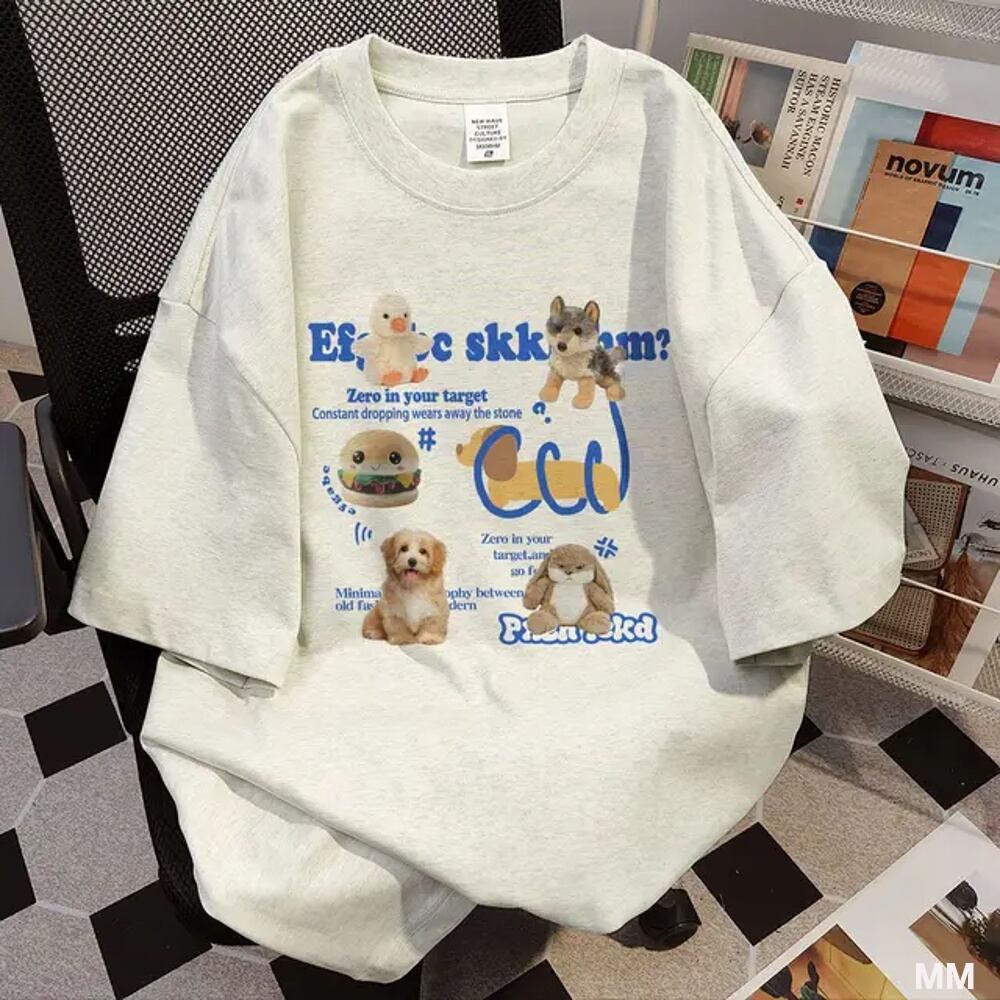 男性と女性のためのタイトな犬のプリントTシャツ,半袖ラウンドネックトップス,カップル,レトロ,トレンディ,個性,カジュアル,原宿,夏 Tシャツ シャツ T240619151850_03
