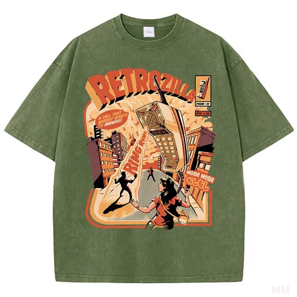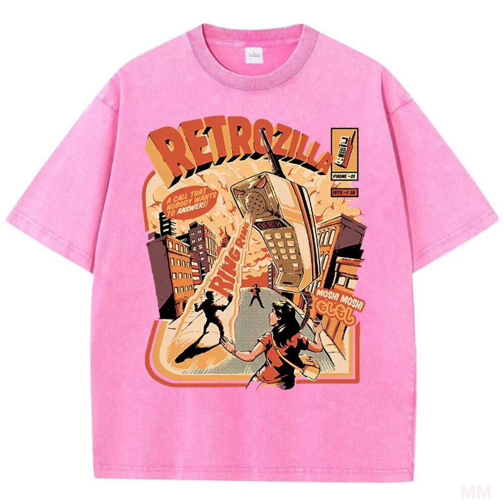 女性のレトロなphoneillaプリントTシャツ、夏のラウンドネックTシャツ、ストリートヒップホップの服、通気性のあるウォッシュコットン、半袖 Tシャツ シャツ T240619151915_07