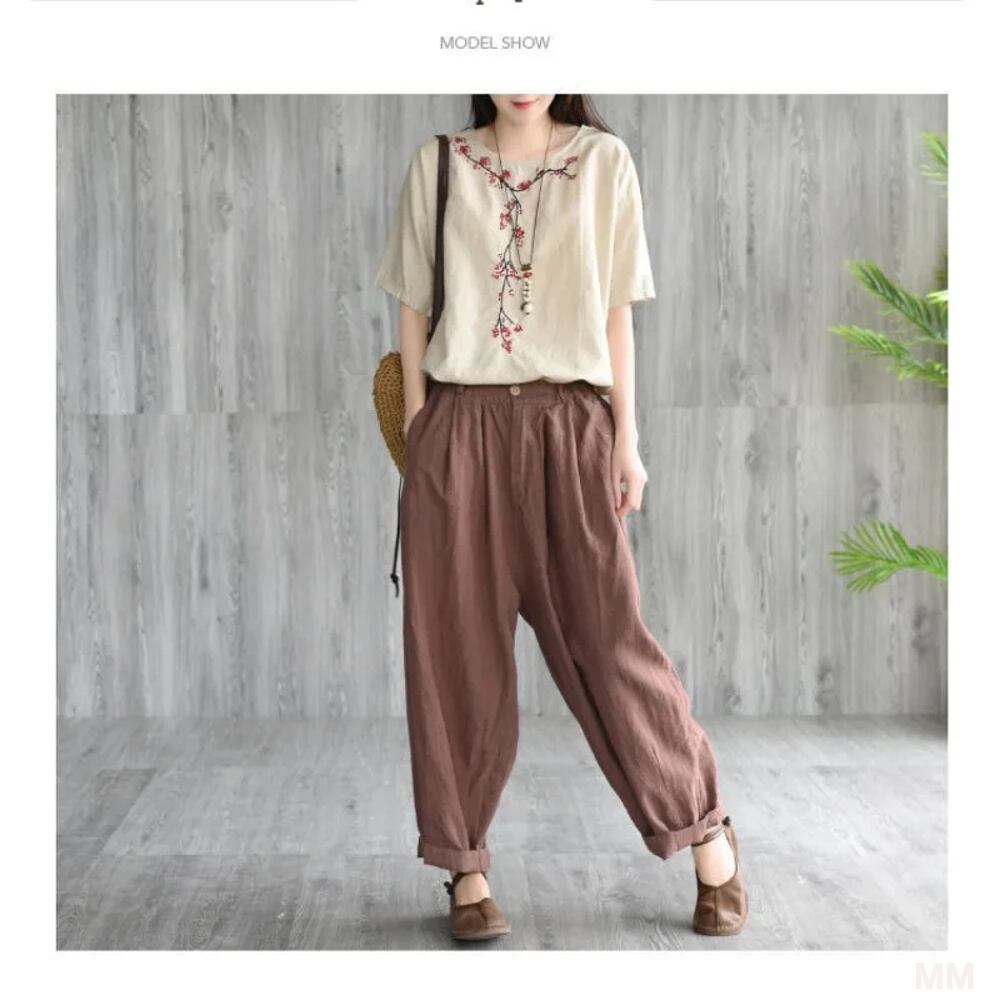 女性のための刺embroideredのあるラウンドネックTシャツ,半袖,ルーズでカジュアル,レトロなスタイル,綿,刺tops,無地,新しい夏のコレクション2023 Tシャツ シャツ T240619152352_03