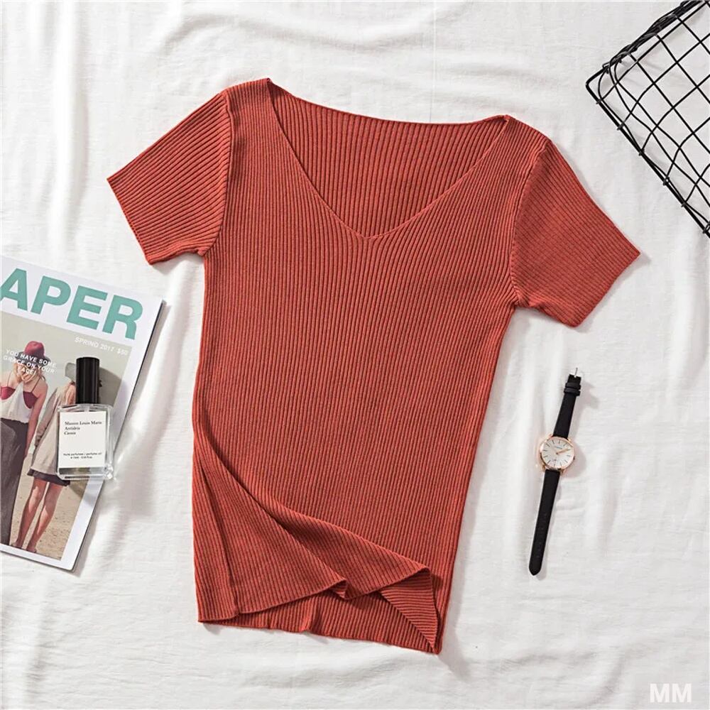 女性のためのデイジーニットTシャツ,ソフトニットトップス,Vネック,半袖,スリムフィット,レトロ,キュート,夏|Tシャツ| Tシャツ シャツ T240619152433_03