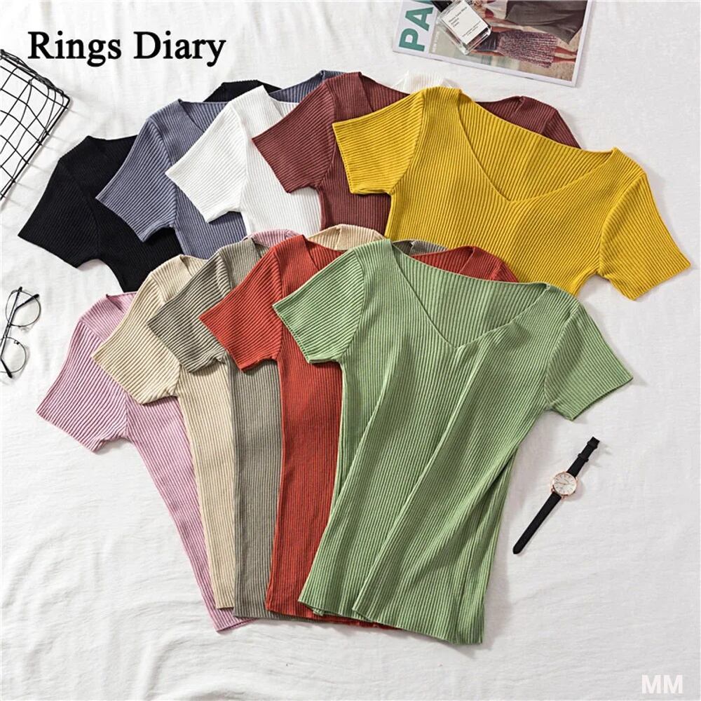 女性のためのデイジーニットTシャツ,ソフトニットトップス,Vネック,半袖,スリムフィット,レトロ,キュート,夏|Tシャツ| Tシャツ シャツ T240619152433_07