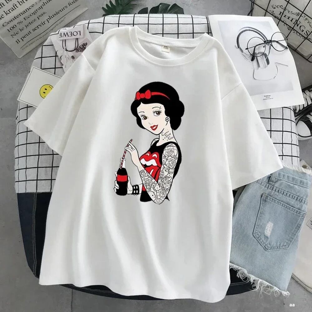 女性のためのプリンセスプリントTシャツ,半袖トップス,白雪姫,カジュアル,テレーン,ジェイドランド,y2k ボトム ボトムス ズボン T240619134306_04