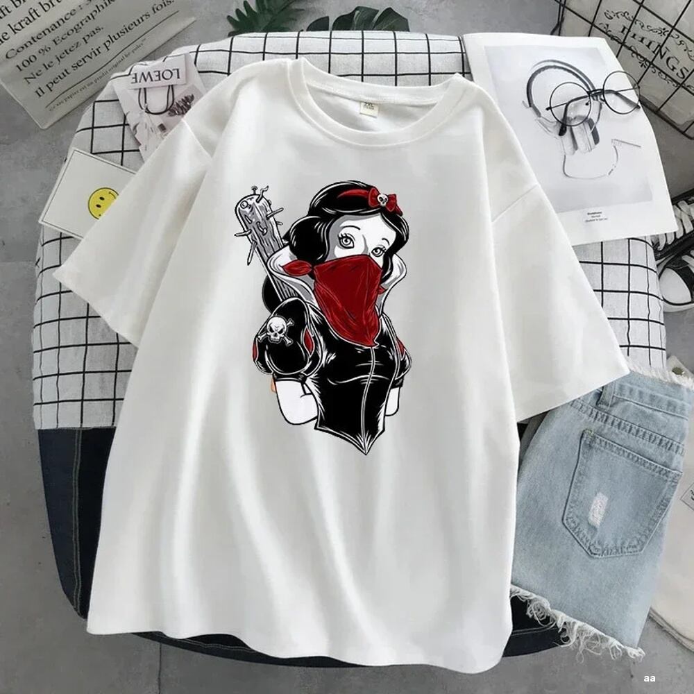 女性のためのプリンセスプリントTシャツ,半袖トップス,白雪姫,カジュアル,テレーン,ジェイドランド,y2k ボトム ボトムス ズボン T240619134306_08