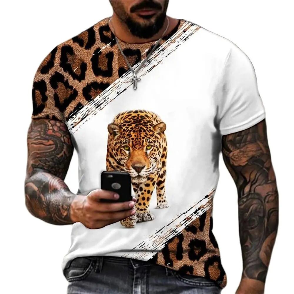 男性用3Dヒョウ柄Tシャツ,流行のストリートウェア,半袖,特大,サマーウェア,コレクション2023 ボトム ボトムス ズボン T240619134320_03