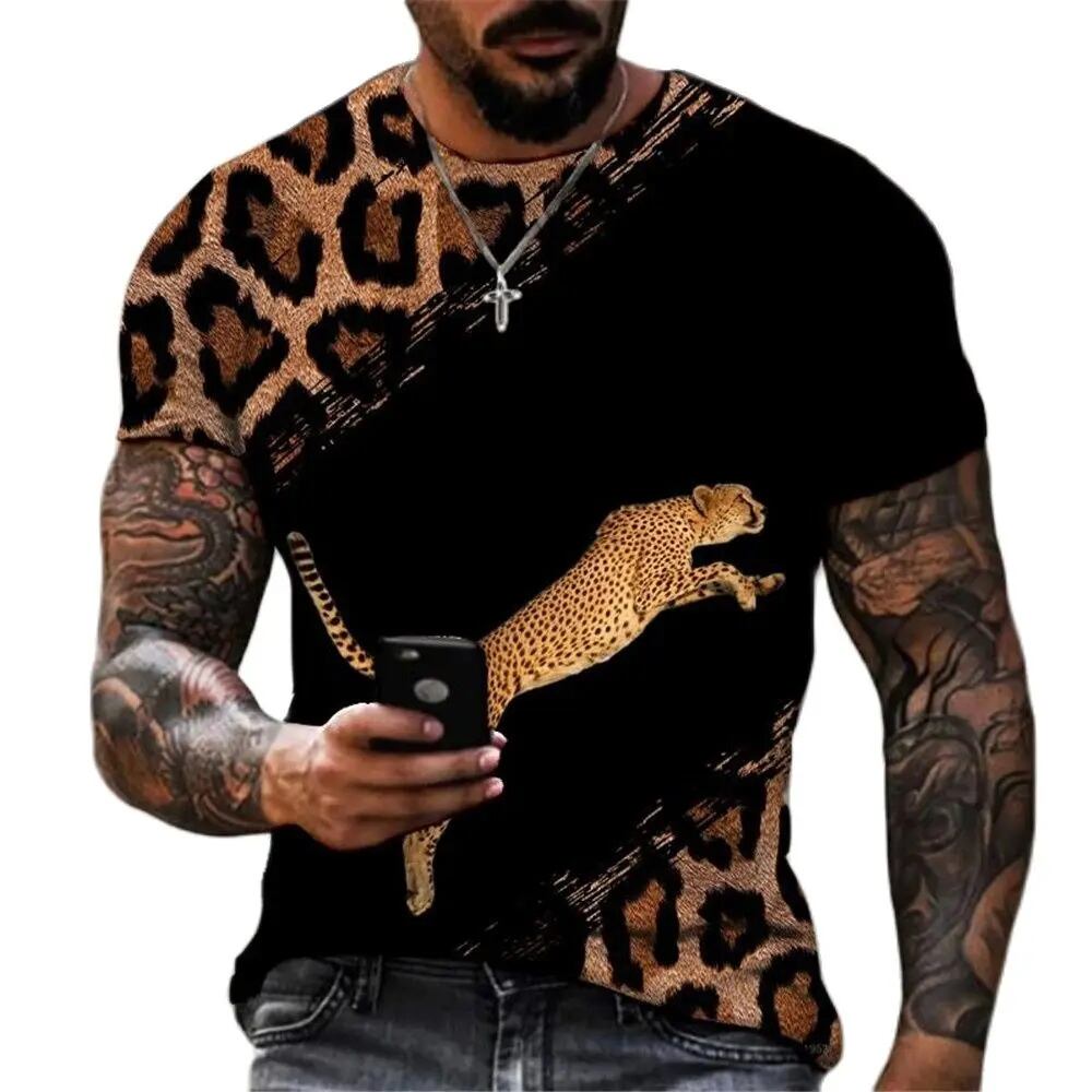 男性用3Dヒョウ柄Tシャツ,流行のストリートウェア,半袖,特大,サマーウェア,コレクション2023 ボトム ボトムス ズボン T240619134320_04