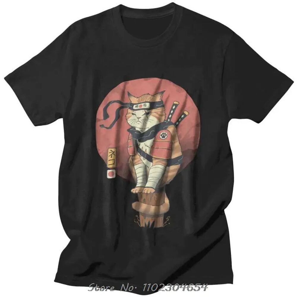 日本の忍者猫のTシャツ,半袖,shinobiの面白い服,ヴィンテージのサムライファッション,ストリートウェア,Tシャツ ボトム ボトムス ズボン T240619134338_02