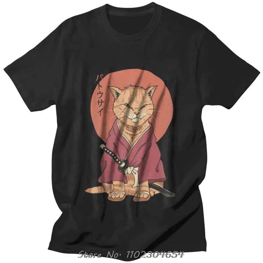 日本の忍者猫のTシャツ,半袖,shinobiの面白い服,ヴィンテージのサムライファッション,ストリートウェア,Tシャツ ボトム ボトムス ズボン T240619134338_03