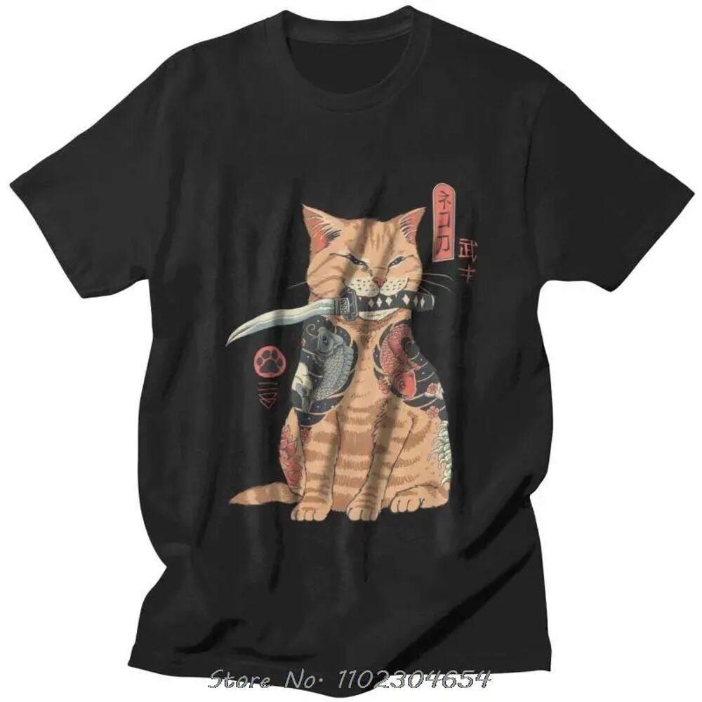 日本の忍者猫のTシャツ,半袖,shinobiの面白い服,ヴィンテージのサムライファッション,ストリートウェア,Tシャツ ボトム ボトムス ズボン T240619134338_08