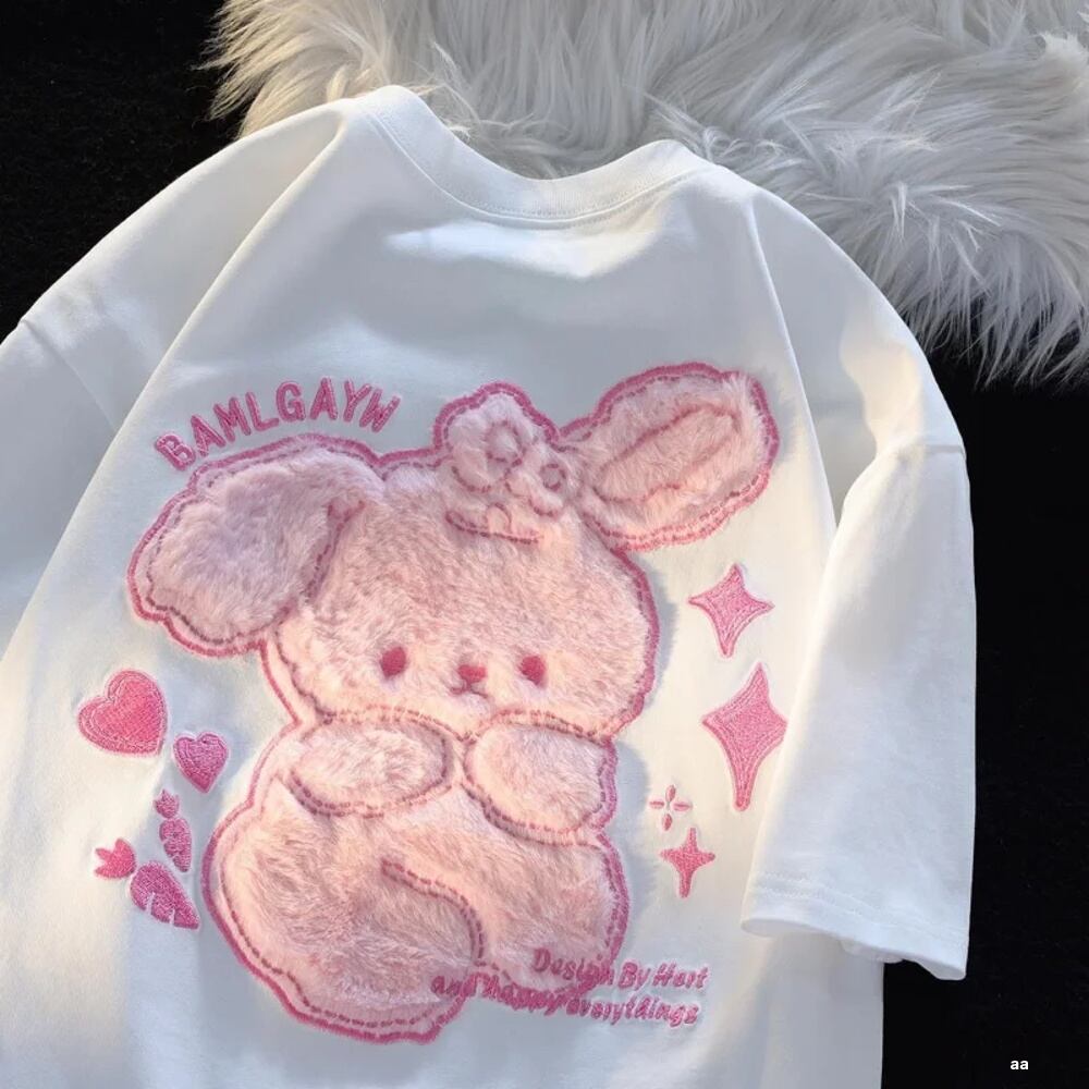 韓国原宿 女性用半袖Tシャツ,無地,ルーズコットン,ウサギのようなファッション,夏用 ボトム ボトムス ズボン T240619134359_05