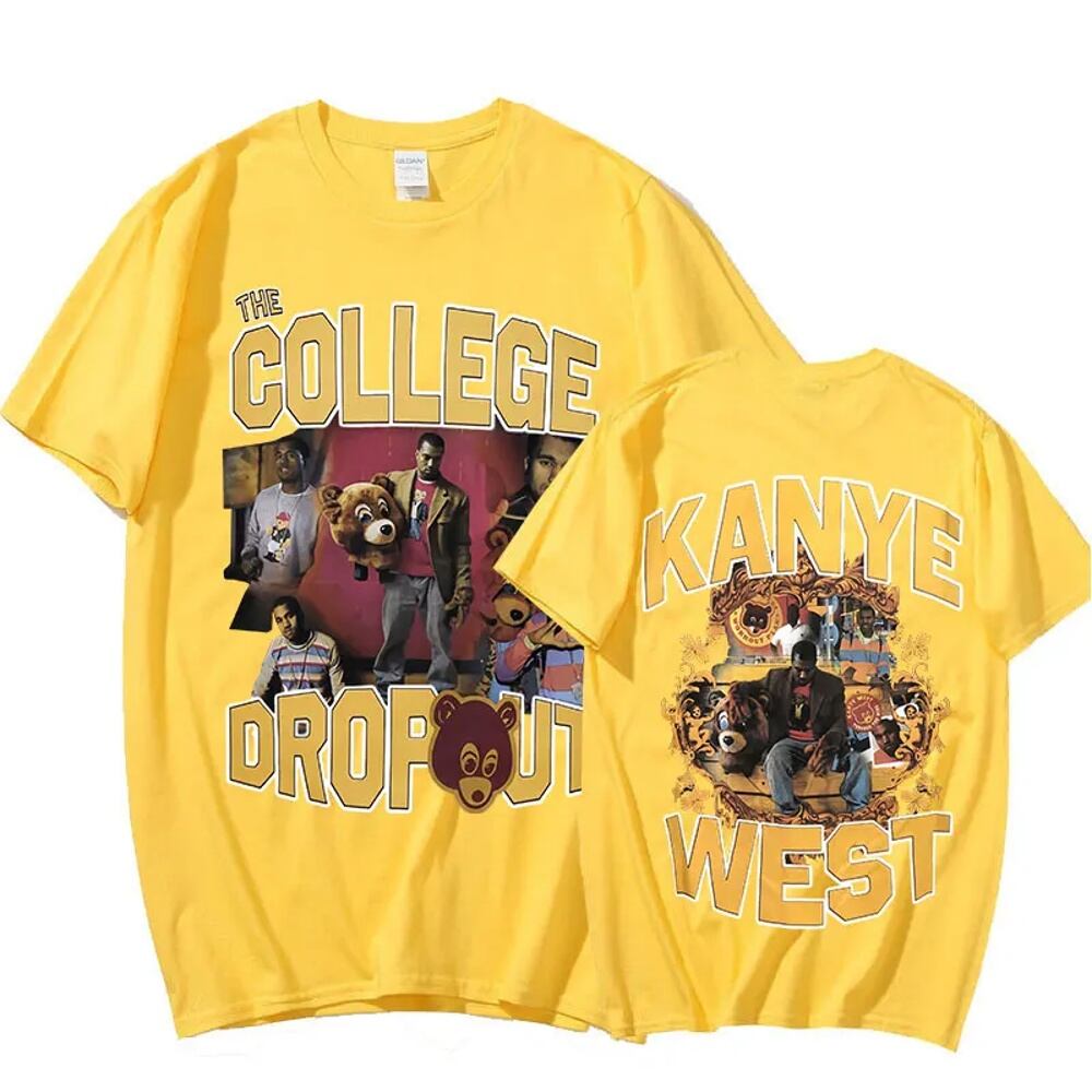 Kanye west 男性と女性のための半袖グラフィックプリントTシャツ,大学,音楽,ヒップホップ ボトム ボトムス ズボン T240619134408_06