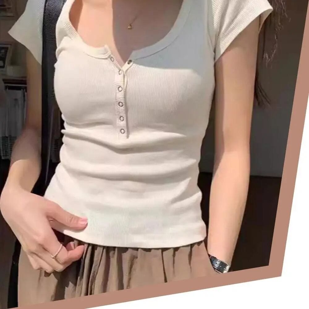 女性用半袖Tシャツ,ヴィンテージ,ボタン付き,スリムフィット,タイト,レトロ,3色,カジュアル,夏,新品 ボトム ボトムス ズボン T240619151645_02