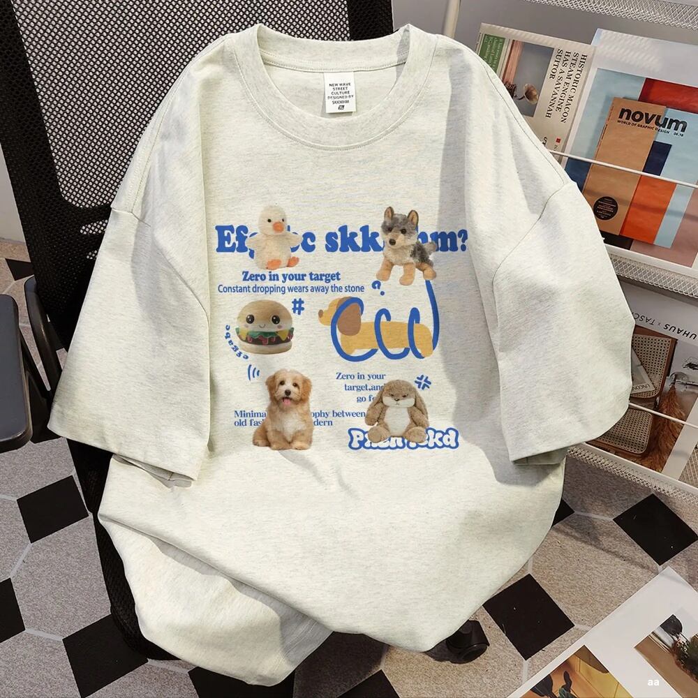 男性と女性のためのタイトな犬のプリントTシャツ,半袖ラウンドネックトップス,カップル,レトロ,トレンディ,個性,カジュアル,原宿,夏 ボトム ボトムス ズボン T240619151850_03