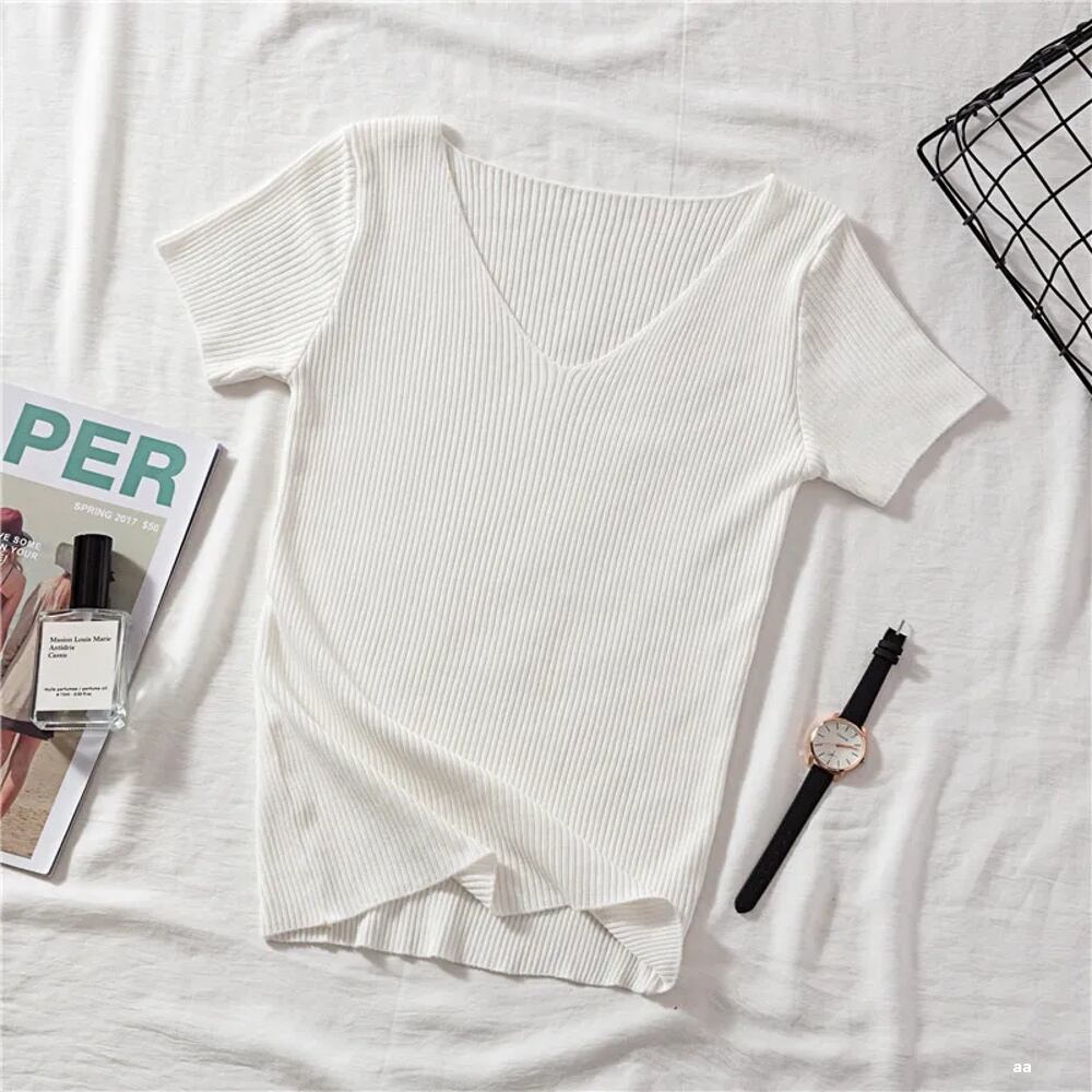 女性のためのデイジーニットTシャツ,ソフトニットトップス,Vネック,半袖,スリムフィット,レトロ,キュート,夏|Tシャツ| ボトム ボトムス ズボン T240619152433_01