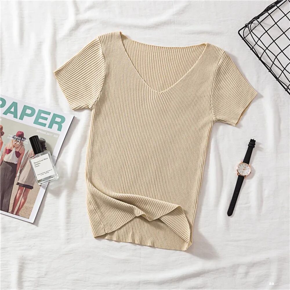 女性のためのデイジーニットTシャツ,ソフトニットトップス,Vネック,半袖,スリムフィット,レトロ,キュート,夏|Tシャツ| ボトム ボトムス ズボン T240619152433_04