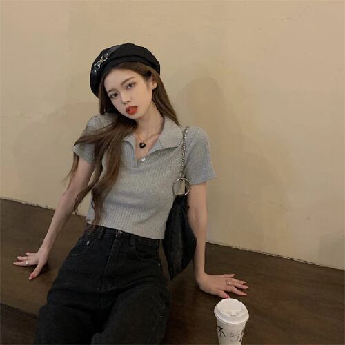 女性用半袖ボタンブラウス,y2k韓国シャツ,サマーファッション,愛らしい無地のラペル,すべてのマッチ,スリムクロップトップ,レディース,新作