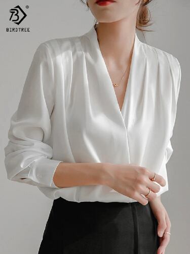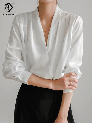 女性用サテンランタンブラウス,Vネック,パフスリーブ,ヴィンテージ,カジュアルトップ,エレガント,春秋,新しいコレクション2022,t24401x