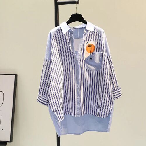女性用ストライプシャツ,春,秋,2024