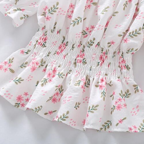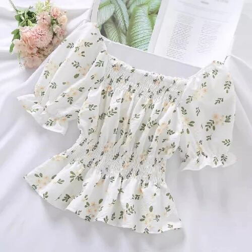 女性のためのレトロなフラワープリントスクエアネックシャツ、半袖ブラウス、夏