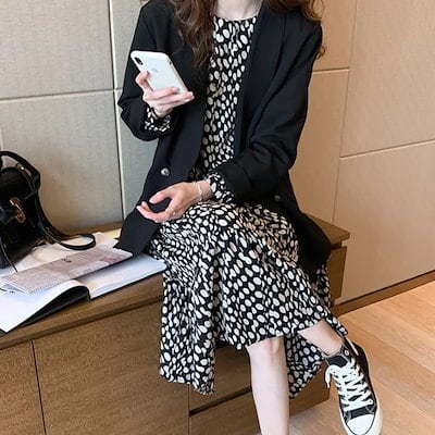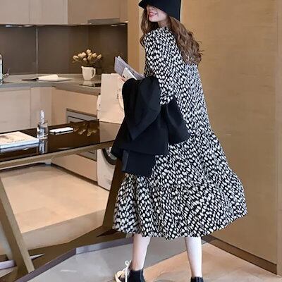 長袖ミニ膝丈ワンピ ドレス レディース 秋 2024 新しいスタイル ブラック ロングドレス3