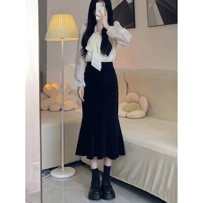 プリーツスカート ニットスカート スカート 春 百掛け ミディアム レトロハイウエスト 韓国ファッション