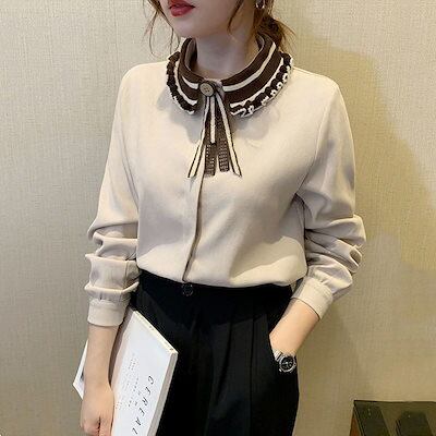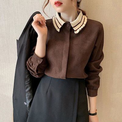 長袖シャツ トップス コーデュロイのシャツ 長袖 秋 ネクタイ付きシャツ レトロなトップス ファッション 百掛け やせて見える