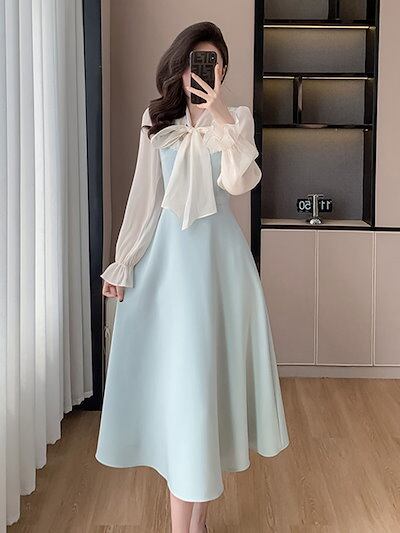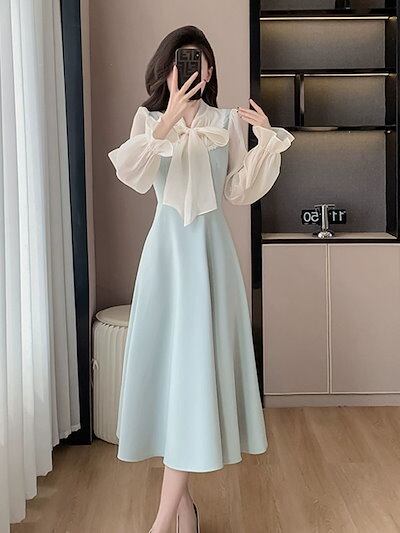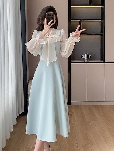 ワンピース レディース けいたい 蝶結び つぎて かわいいワンピース ファッション 百掛け やせて見える