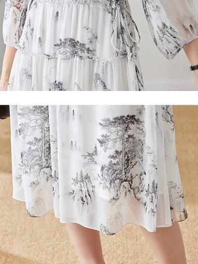 花柄ワンピース 2024 秋 新作 シフォンワンピースセブンスプリット初秋新作ロングドレス