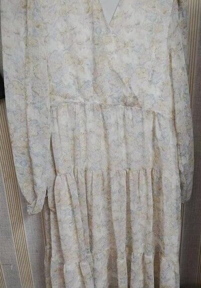花柄ワンピース 2024 秋 新作 長袖ワンピース Vネック フレンチスリム ミディロングワンピース ロングスカート