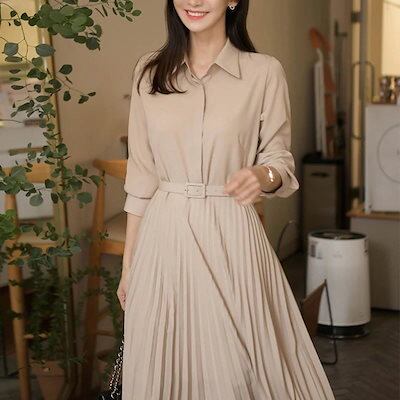 シャツワンピース OL スリムビッグスイングワンピース2024秋新作 レディース長袖シャツワンピース