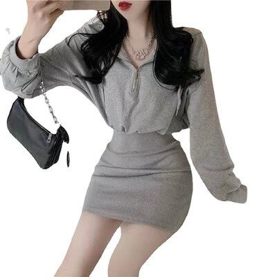 長袖 ショートセクション フード付き スウェットワンピース 2024年秋 新作 長袖ヒップドレス10