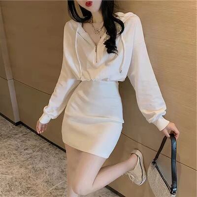 長袖 ショートセクション フード付き スウェットワンピース 2024年秋 新作 長袖ヒップドレス17
