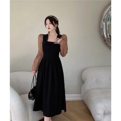 人气 新作 ロングワンピース エレガント ロングスリーブ ワンピース 2024 秋 新しいスタイル スクエアネック 薄手 ドレス