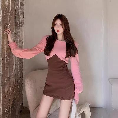 人气 新作 ロングワンピース ラウンドネック ロングスリーブ パッケージヒップドレス 2024 秋 新しいスタイル パッチワーク ドレス レディース