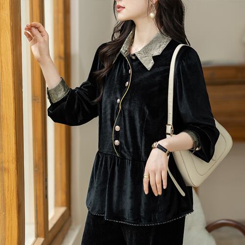 初回送料無料 新作レディースファッション パッチワーク ベルベットシャツ オシャレ トップス