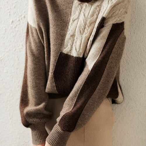 初回送料無料 新作レディースファッション カジュアル ニットセーター 色合わせ 着やせトップス